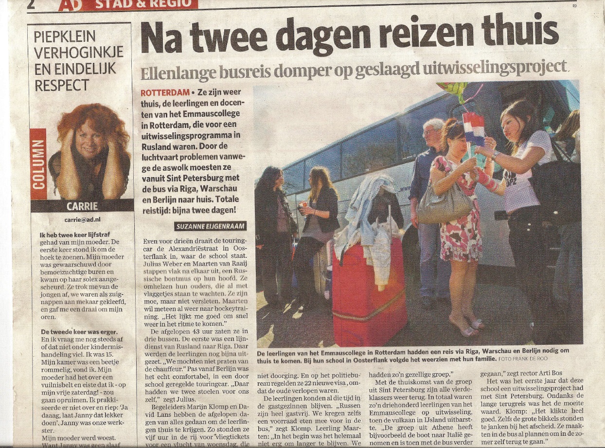 Uiteindelijk was het de dag dat we naar huis gingen. Ha, nee toch niet! De aswolk in IJsland. We konden niet vliegen naar huis! We bleven dus nog een weekje langer in Rusland. Maar het bleek langer te duren dan gedacht. Dus zijn we maar met de bus gegaan. 48 uur met de bus! Zonder stop… Wat een avontuur, maar wat geweldig!
