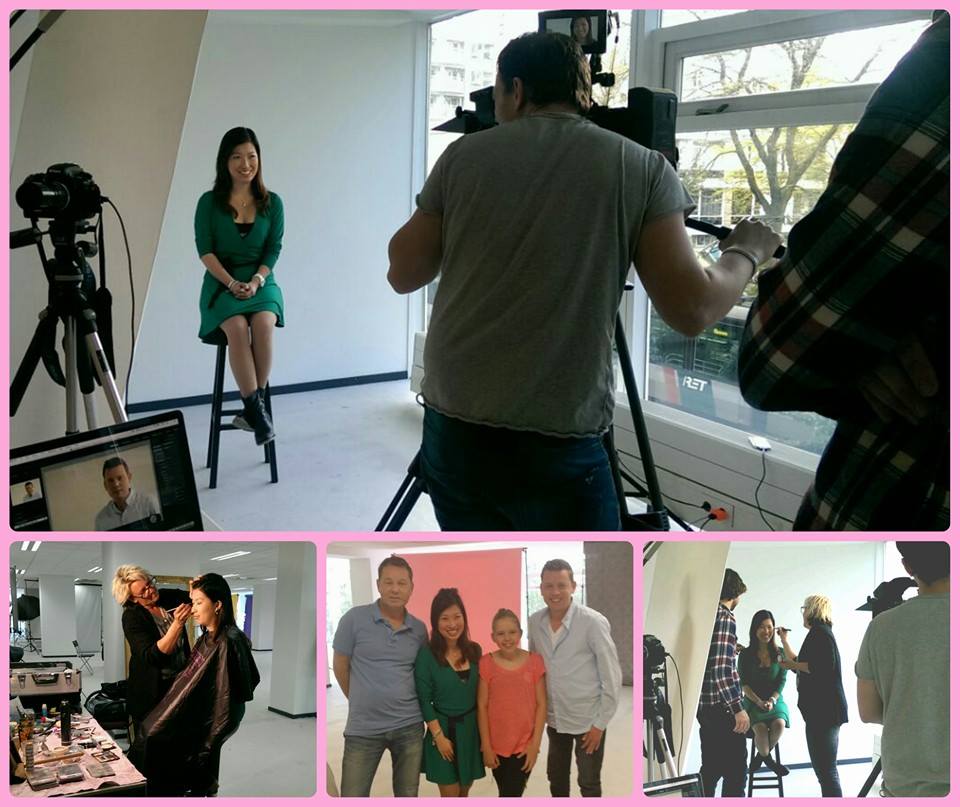 Eenmaal aangekomen bij de studio werden we warm ontvangen. Ik werd gelijk naar de visagist geroepen en we kregen een drankje. Mijn make-up en haren werden hier gedaan. Microfoontje werd opgespeld. Nou, ik was er klaar voor!