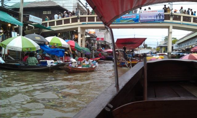 Na de Tiger Temple gingen we naar de Floating Market. Wij gingen naar een lokale markt, zodat er geen toeristen waren, en we niet om 5 uur ’s morgens al hoefden te haasten op de markt. Deze markt was namelijk in de middag. Ik heb heerlijke dingen gegeten op de markt, die ik graag snel weer zou eten! We wilden ook een bootje huren. Omgerekend kostte het bootje 15 euro voor +/- 10 personen. Wij waren maar met 5 personen, maar vonden het wel prima voor een boottocht. We besloten gewoon de hele boot te huren en gelijk weg te varen. De mensen vonden het maar raar, en vroegen waar de rest van de familie bleef!