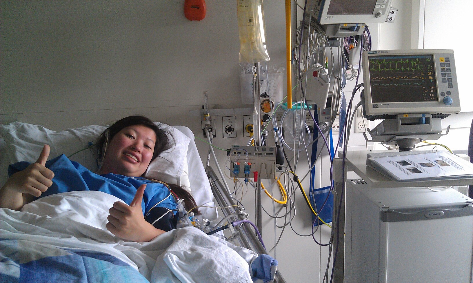 Er was een ballonnetje geplaatst achter mijn longen om mijn longcapaciteit te meten, dus ik lag lekker privé op een kamertje. Mijn ouders waren bij mij. Mijn broers waren ook gekomen. Ik weet dat de cardioloog binnenkwam en vroeg hoe het was gegaan. Ze hadden net het ballonnetje weer uit mij gehaald. Zonder verdoving werd het uit mijn hals getrokken. En ja, dat voelt niet heel lekker, maar het was goed gegaan.